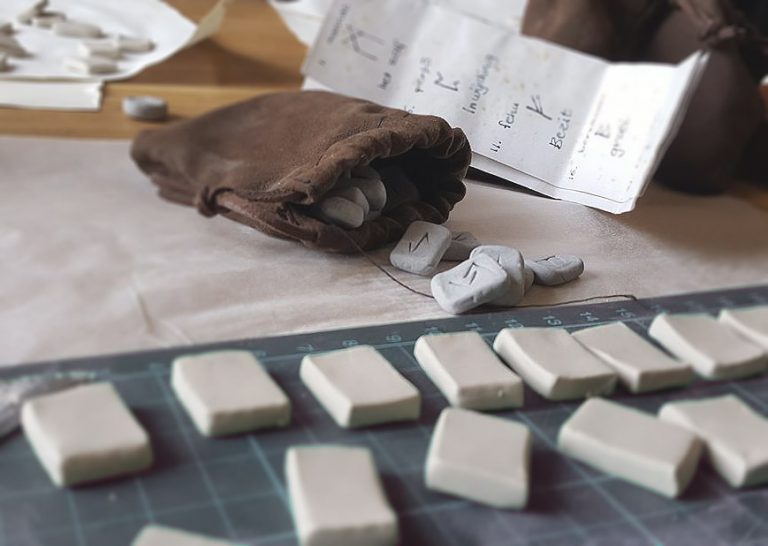 Daarna gaan we aan de slag met klei en maken we de 25 losse runesteentjes.